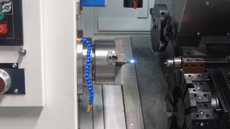 装夹次数的减少避免了由于定位基准转化而导致的误差积累。高强度一体化的铸造床身设计,提高了对难切削材料的重力加工能力;该车铣复合机床配置有自动送料装置,可以实现自动上料来连续,基本实现单台机床的流水线作业。